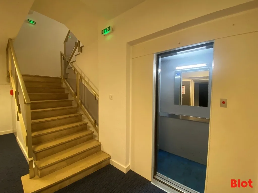 Les bureaux disposent d'un espace cuisine/cafétéria. Les sols sont en moquette et parquet, et les murs en fibre de verre peinte et cloisons amovibles. Les plafonds sont en plâtre peint.