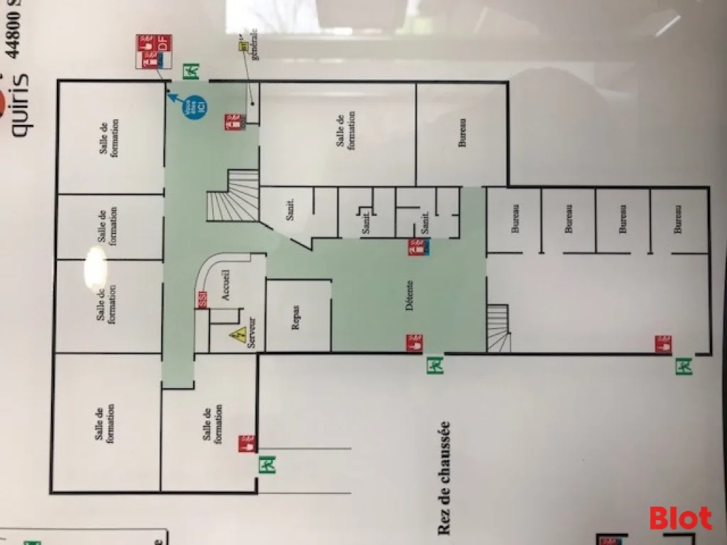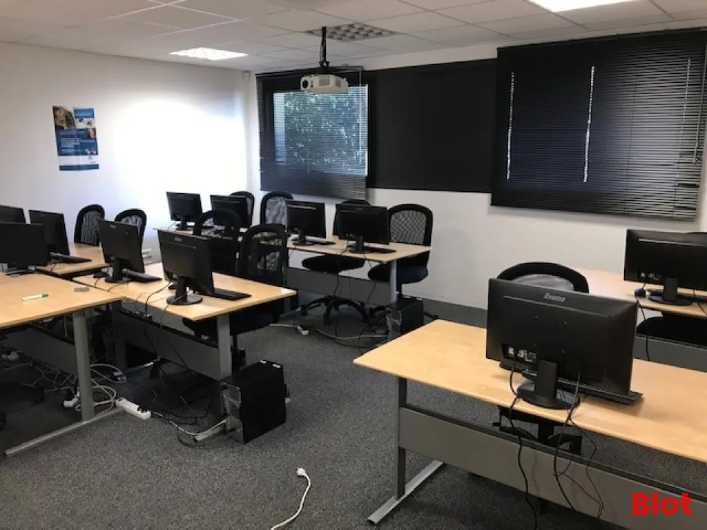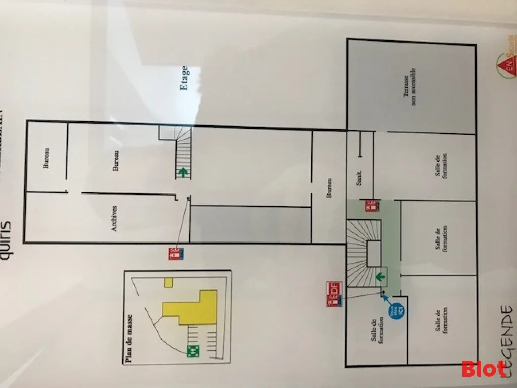 Au rez-de-chaussée : Un accueil , 7 salles de formation, une grande caféteria , WC, un open space et 4 bureaux.