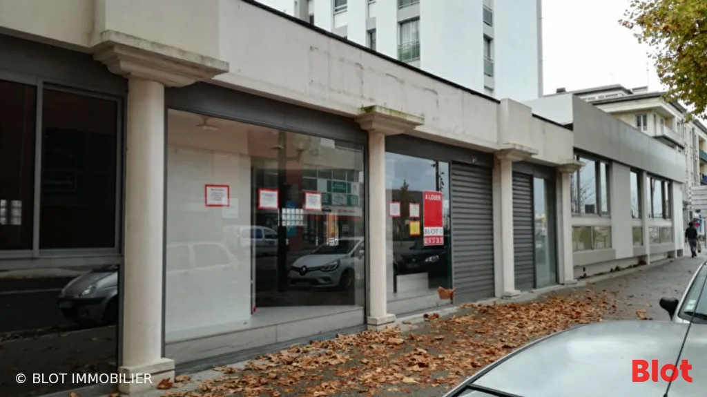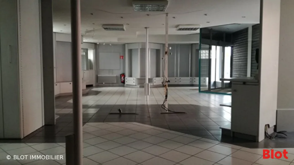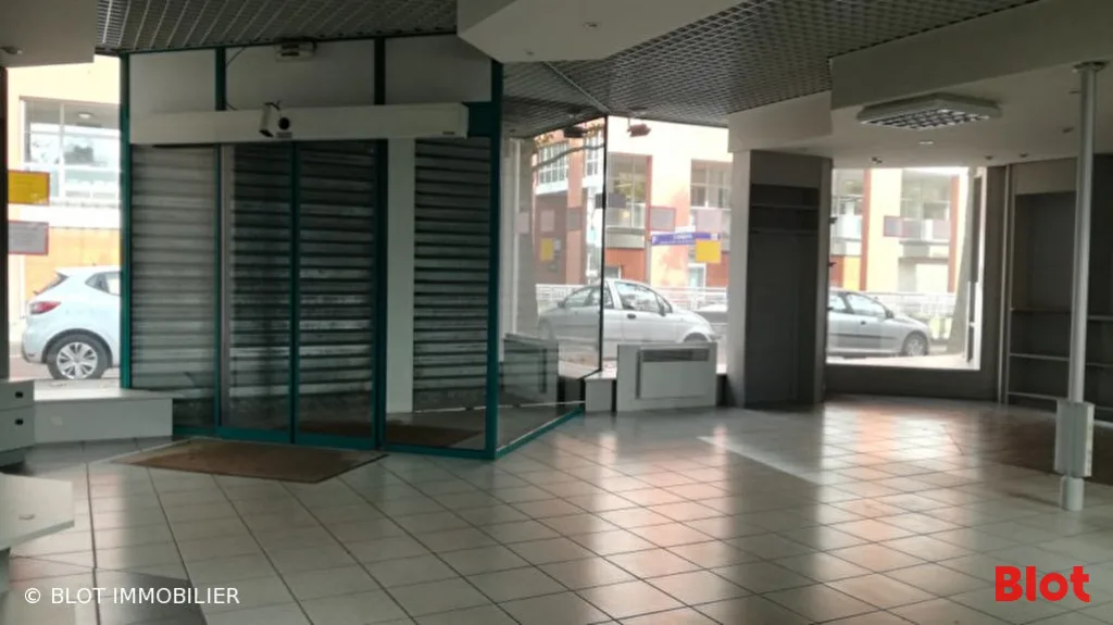Grande vitrine avec rideau métallique électrique, offrant une belle visibilité, face à la nouvelle gare.