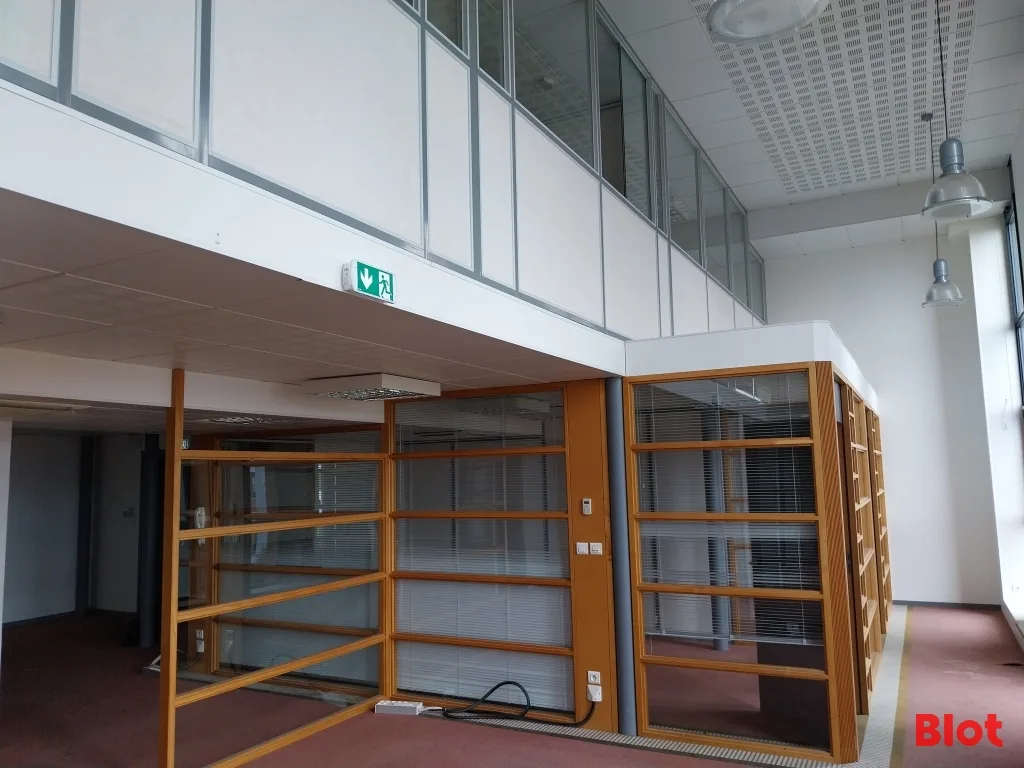En mezzanine : 1 salle de réunions divisible, 2 open-spaces , 1 salle d'archives et un local technique.