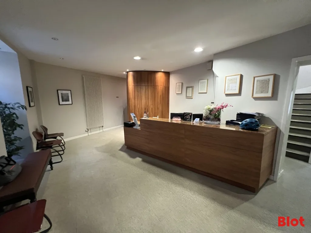 Au RDC : Accueil, 4 bureaux, 1 salle de réunions, 2 espaces archives
