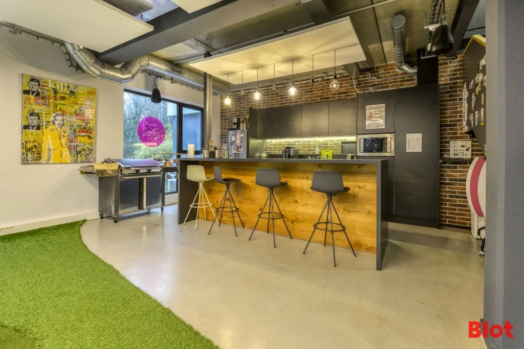 Au rez-de-chaussée, vous trouverez une douche, une grande cuisine, ainsi qu'une pièce de détente avec accès direct à une terrasse privative de 63 m².