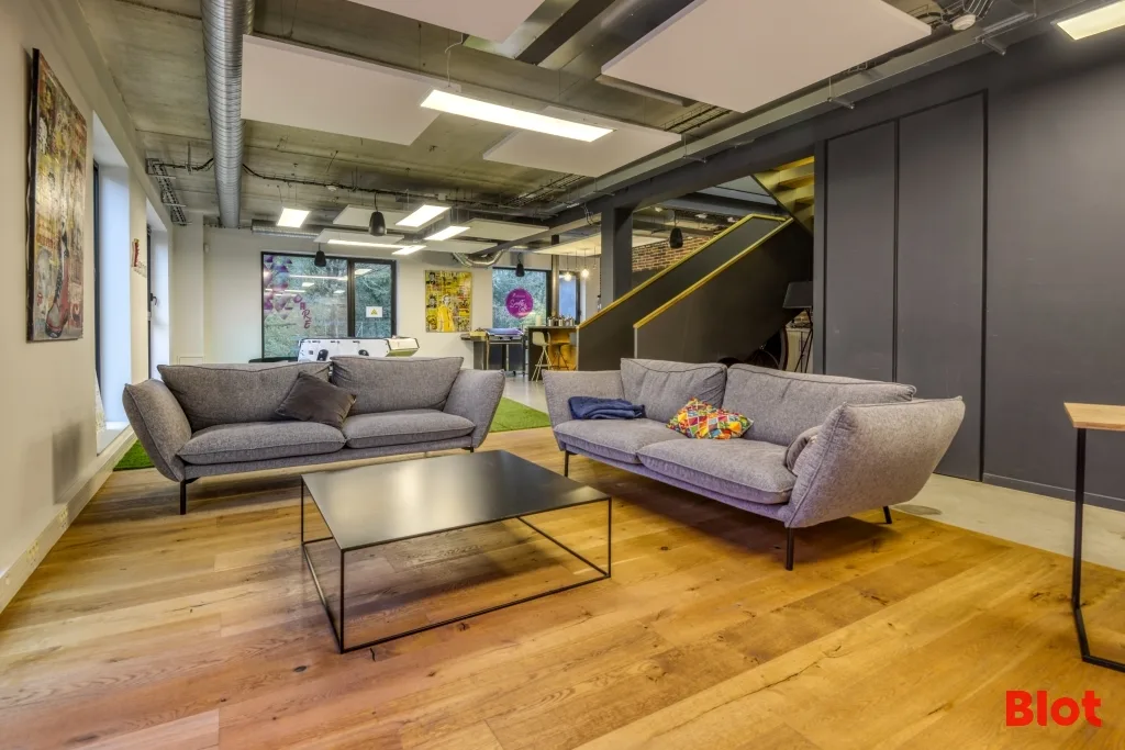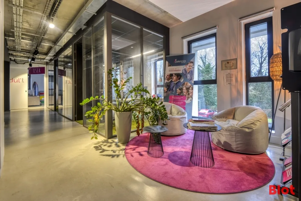 Au 1er étage, un superbe plateau de bureaux comprenant un espace accueil, une salle de réunion, deux grands open spaces d'environ 60 m² et 90 m², 8 bureaux, un local technique, et 2 phone box le tout climatisé.