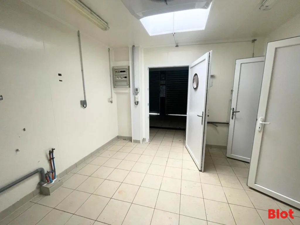 Points forts : 112 m² aménageables : sas d’entrée, vestiaire avec douche et WC, bureau, partie stockage avec 2 portes sectionnelles, chambre froide, local poubelle, local technique avec hydrophore (parfait pour le nettoyage de camions), machine à glace.