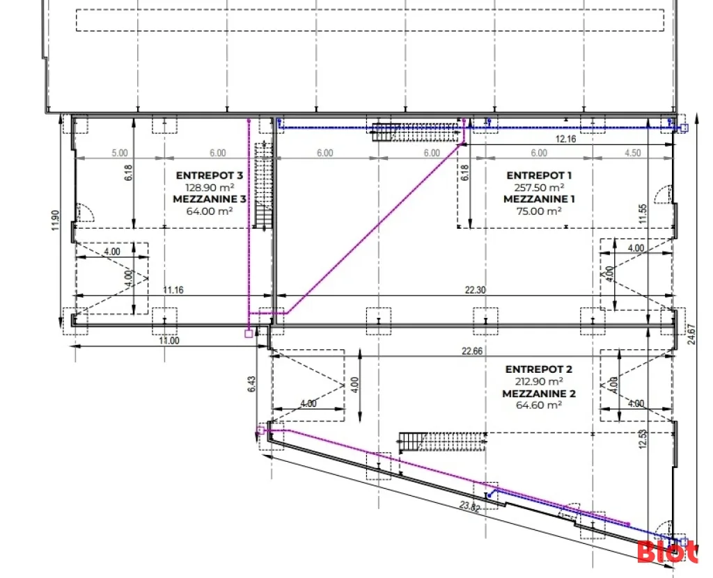 Une autre cellule est disponible de 193 m² comprenant 129 m² au sol et 64 m² en mezzanine.