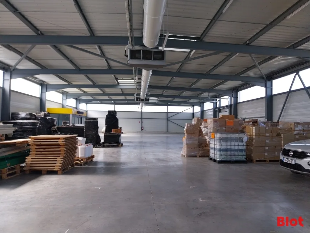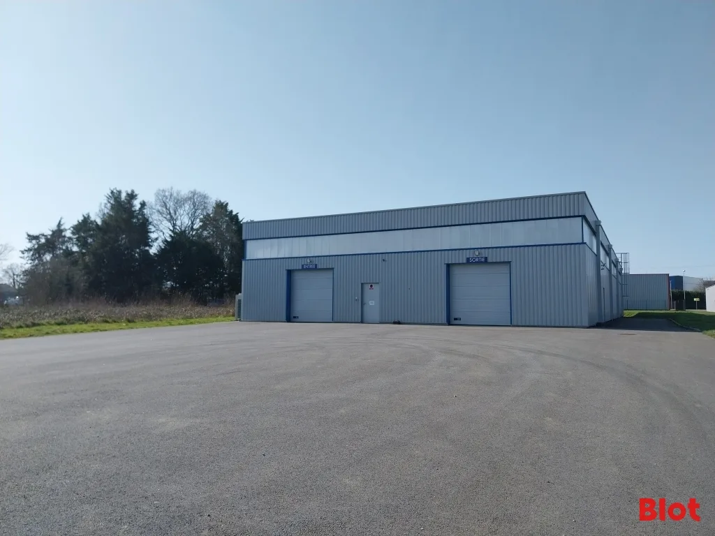 Un bâtiment indépendant isolé à usage de locaux d'activités, construit en 2021 d'une surface de 915 m², fondations en béton quarter 12 cm, ossature & bardage métallique, double peau avec isolation, couverture bac acier double, 3 portes sectionnelles.