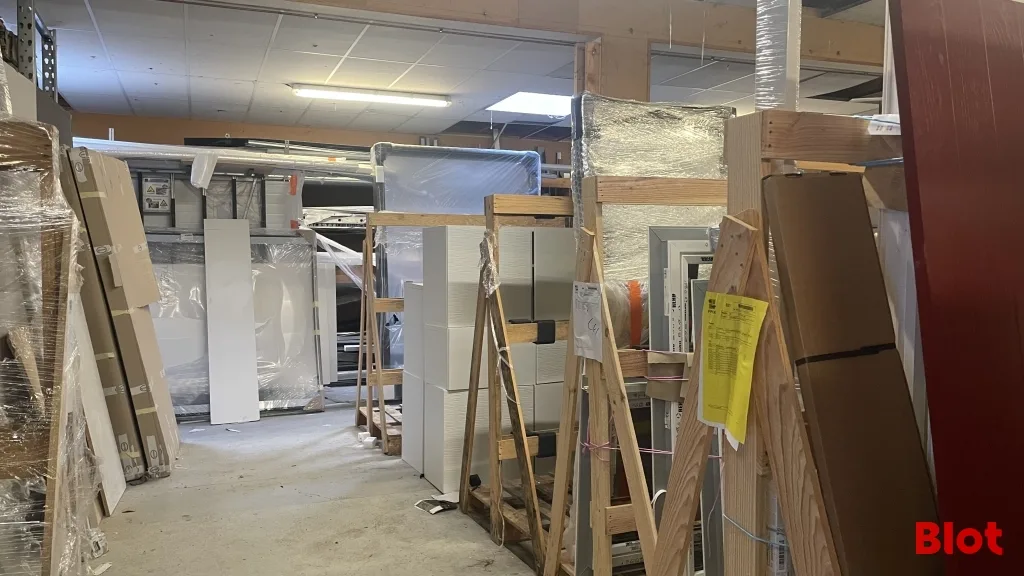 - Au RDC : hall d’accueil / showroom d’environ 110 m² et espace bureaux d’environ 76 m² (bureau cloisonné, pièce archive, local de rangement, sanitaires PMR, réfectoire, local technique avec baie de brassage) / Un entrepôt de stockage d’environ 191 m² et sanitaires, 2 portes sectionnelles / Un atelier d’environ 25 m²