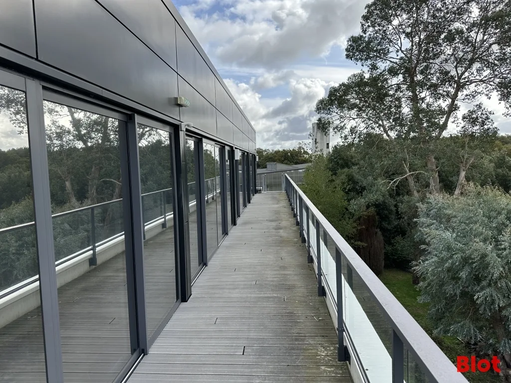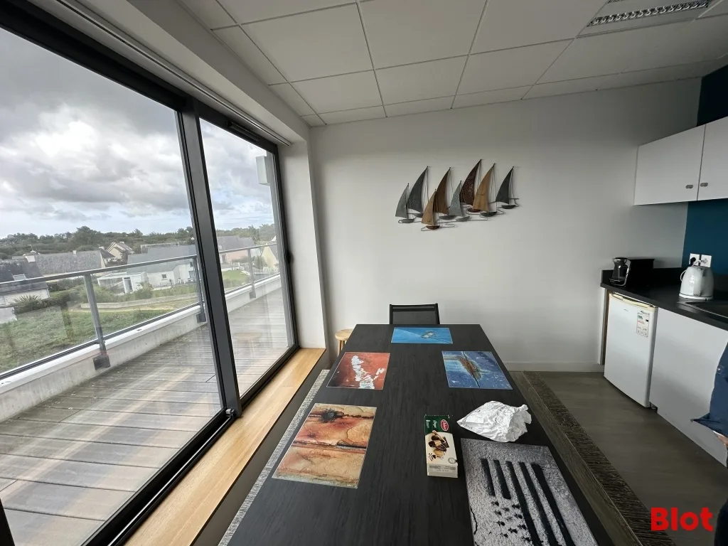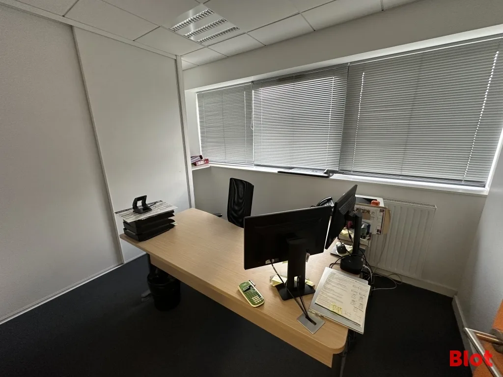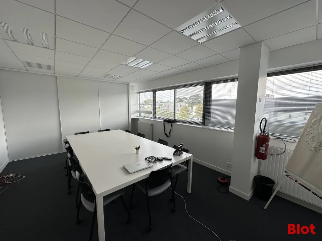 Les bureaux incluent de grandes baies alu avec terrasses exposées sud 🌞, une climatisation sur une partie du plateau, de nombreux placards/rangements, 5 bureaux, une salle de pause / réunion avec cuisine, un local technique, un WC PMR avec lavabo.