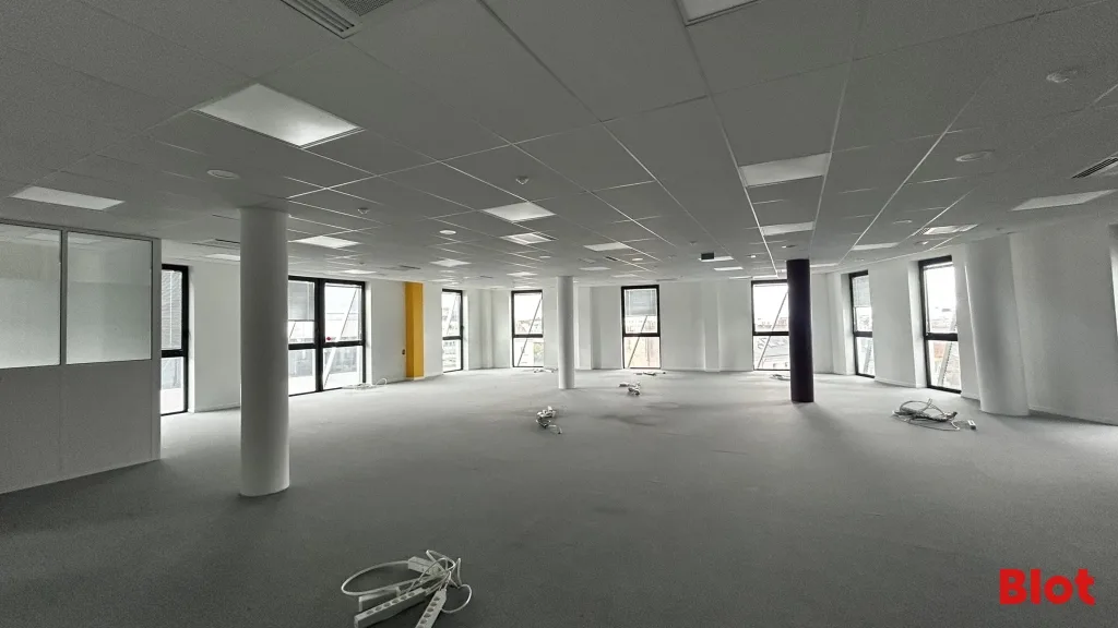 Plateaux très lumineux, livrés aménagés, non cloisonnés.