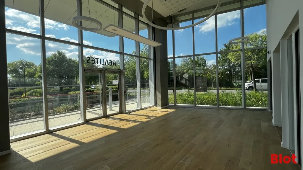 - 1 surface de bureaux de 106,37 m² environ (quote-parts de parties communes incluses), au rez-de-chaussée. Elle est livrée aménagée, non cloisonnée.