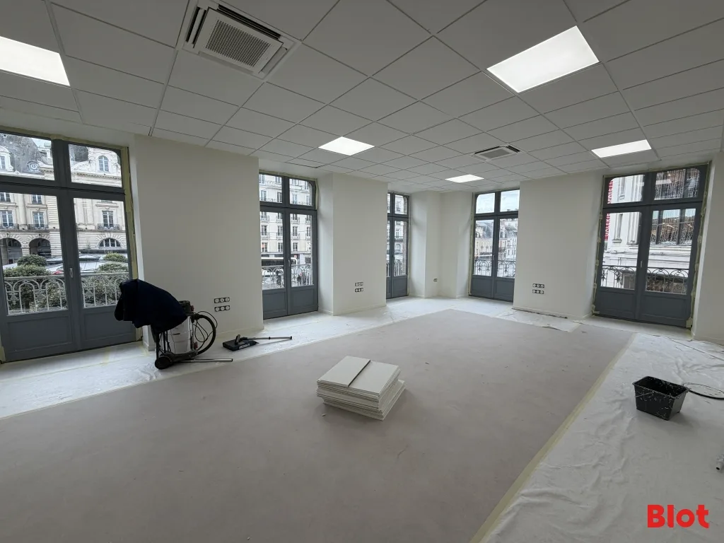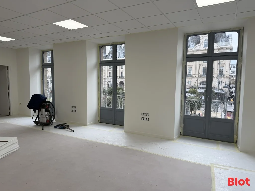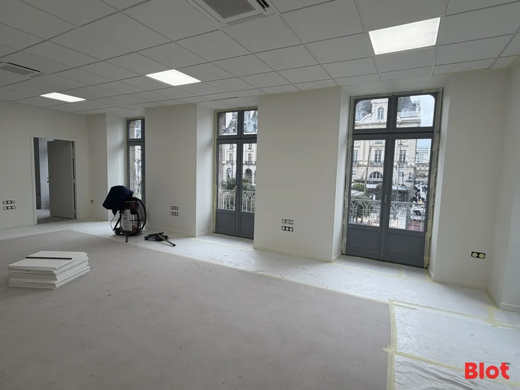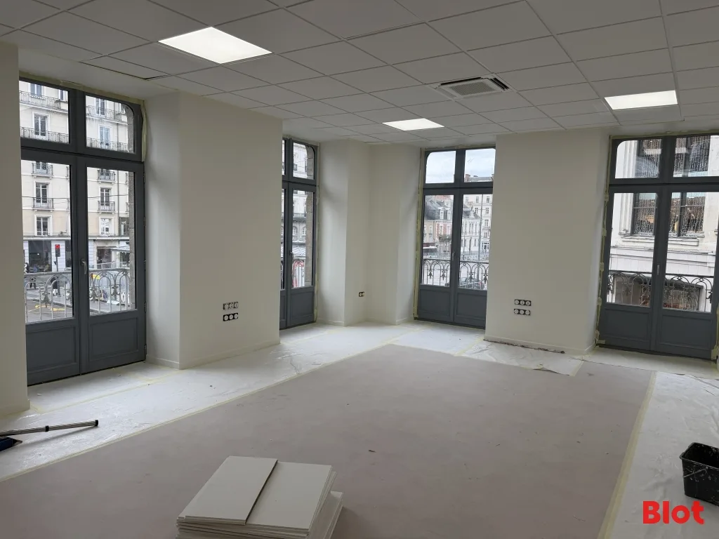 Idéalement situés au cœur du centre-ville de Rennes, Place de la République, avec accès direct au bus et métro A. Proximité immédiate des commerces et services de restauration. Espace cuisine/cafétéria disponible. Point d'eau dans la pièce principale. Sols en parquet/PVC, murs peints, plafonds standards.