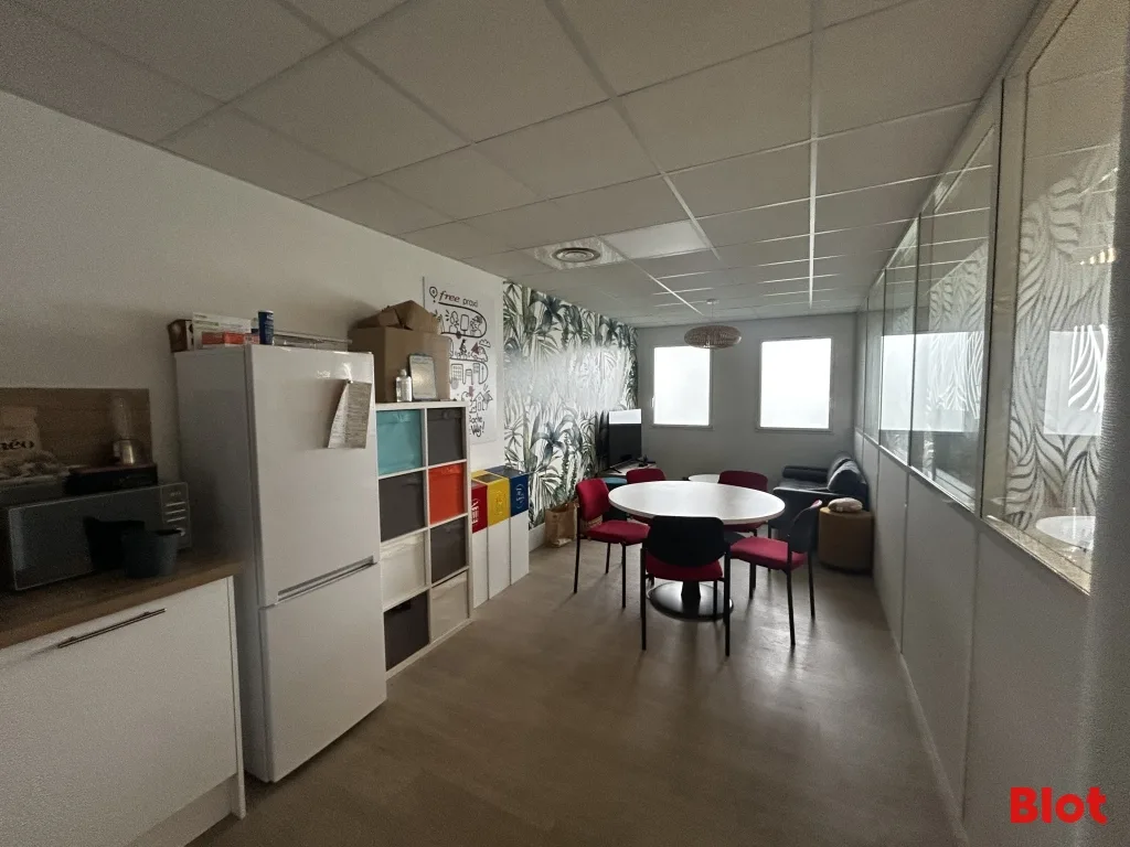 Les locaux sont aménagés en open space + salle de pause avec coin cuisine.