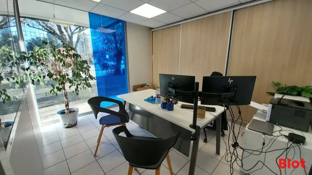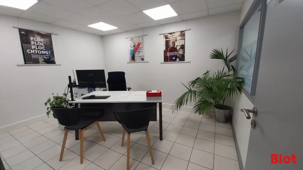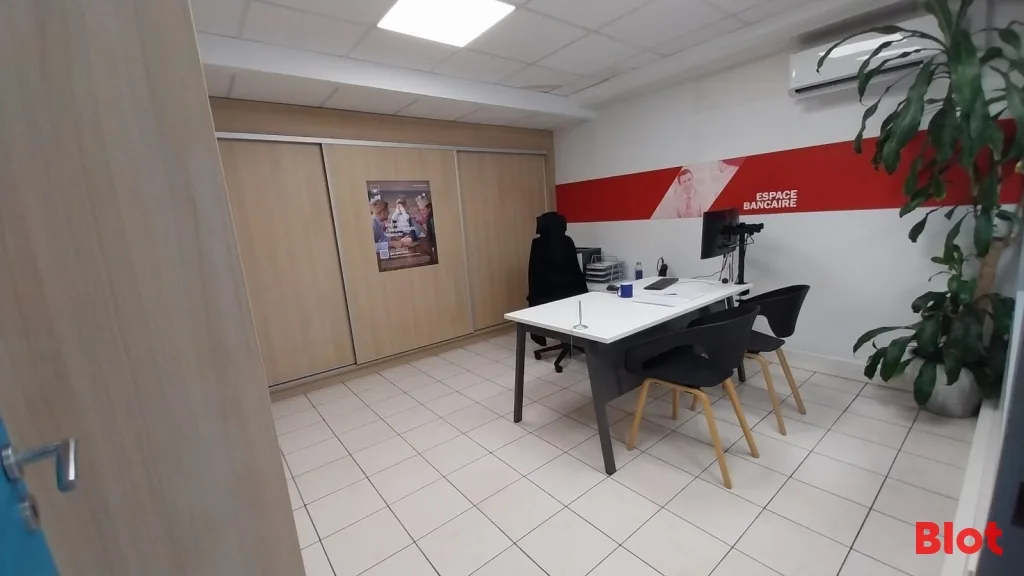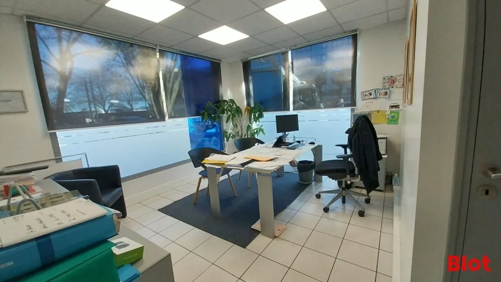Le bien comprend un espace accueil, 5 bureaux, 1 salle de réunion, 1 espace stockage avec kitchenette et 1 WC.