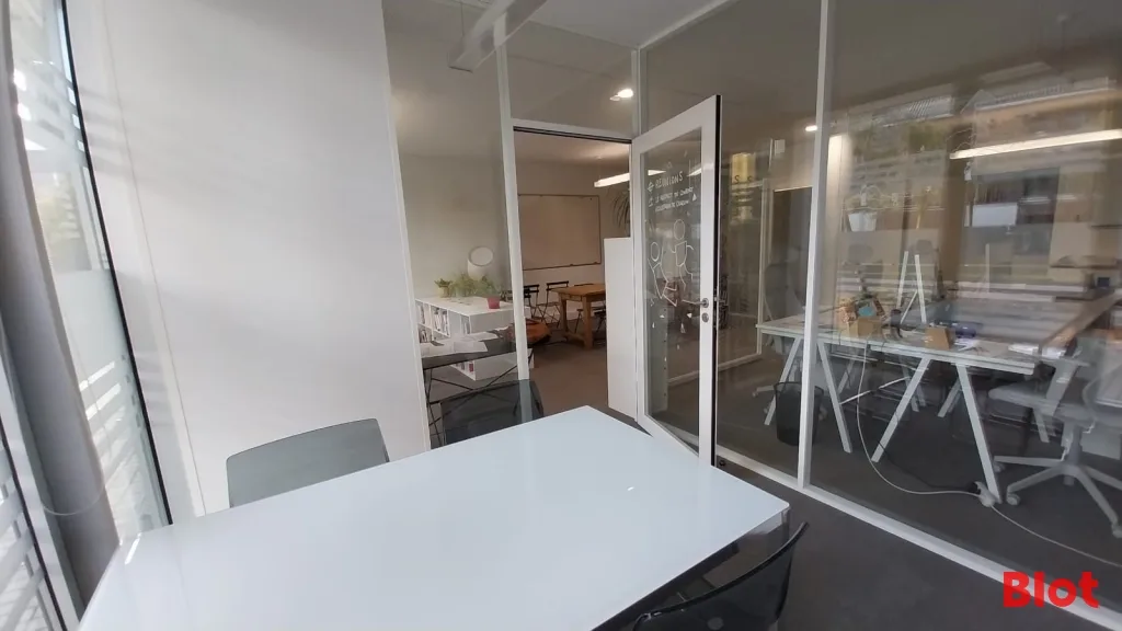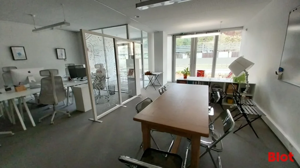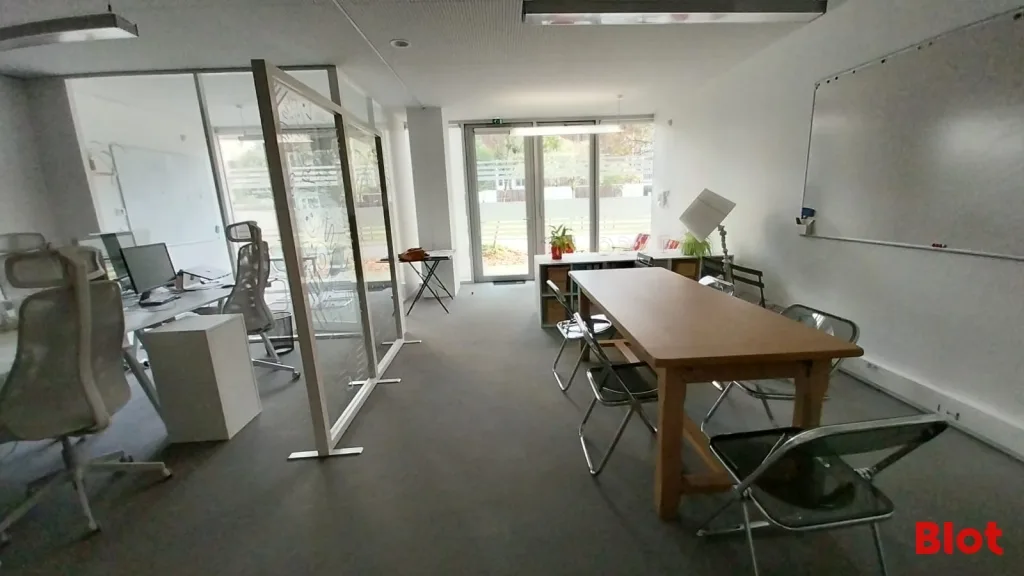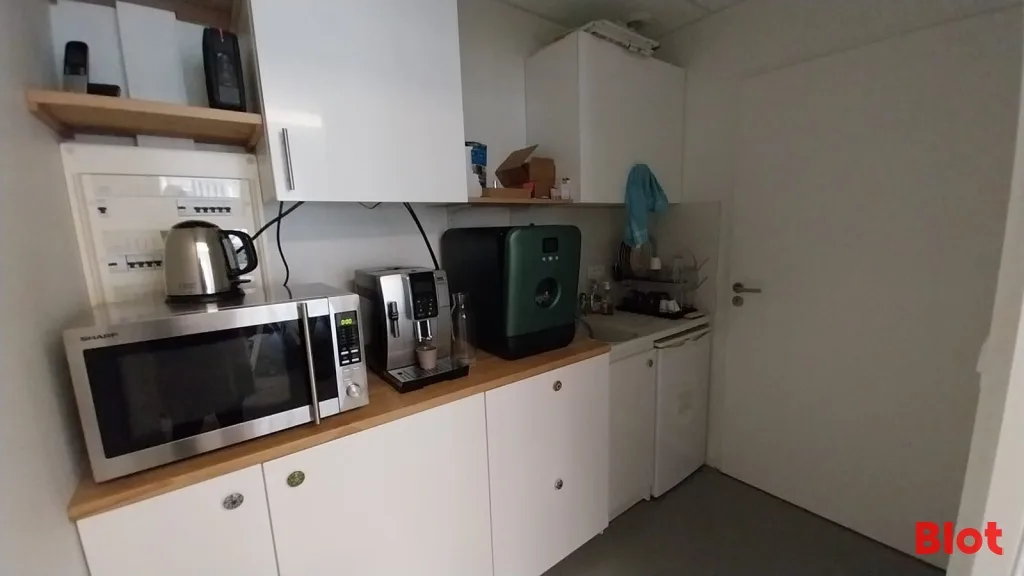 Situé dans le quartier de la création, à proximité du palais de justice. L'espace cuisine/cafétéria est pratique. Les sols sont en moquette, les murs en cloisons, et les plafonds acoustiques.