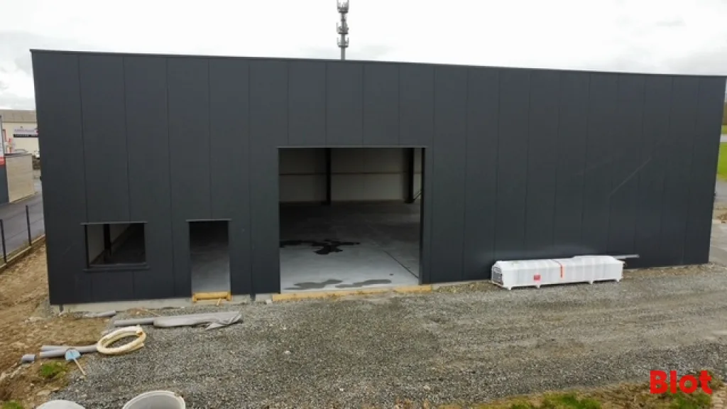 - sol béton - couverture bac acier - ossature métallique et bois - bardage métallique.