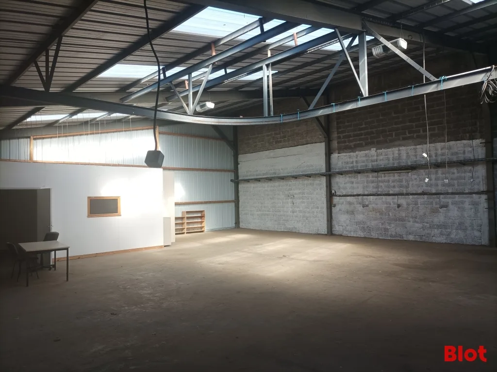 🚗 Parmi les points forts de ce bien : terrain bitumé et clôturé, 1 parking aérien, couverture en bac acier, ossature métallique, bardage simple peau, hauteur sous faîtage de 5,00 m, hauteur sous sablière de 4,00 m, 1 porte coulissante.