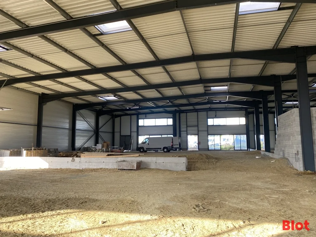 Situé à Dinan, découvrez ce local d'activités de 1 433 m² environ brut de béton et fluides en attente avec porte sectionnelle et double châssis vitré, divisible à partir de 250 m² :