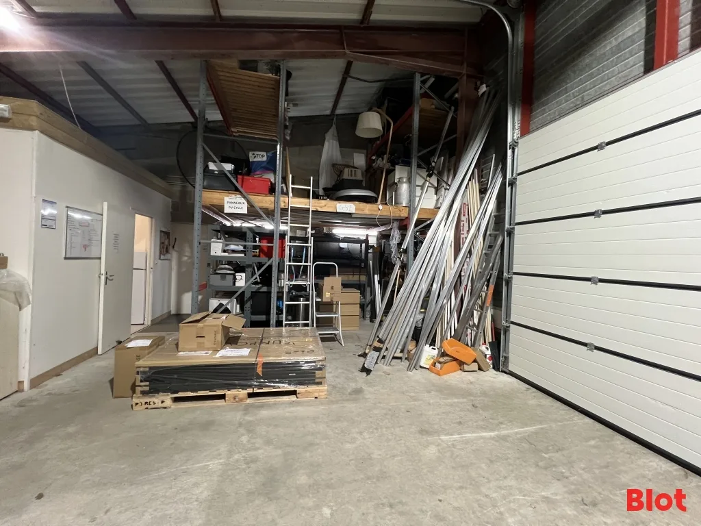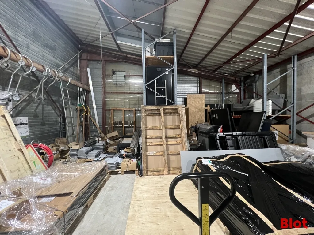 - 125 m² de stockage isolé : accessible par une porte sectionnelle de 3 mètres de hauteur sur 3 mètres de largeur.