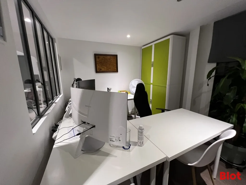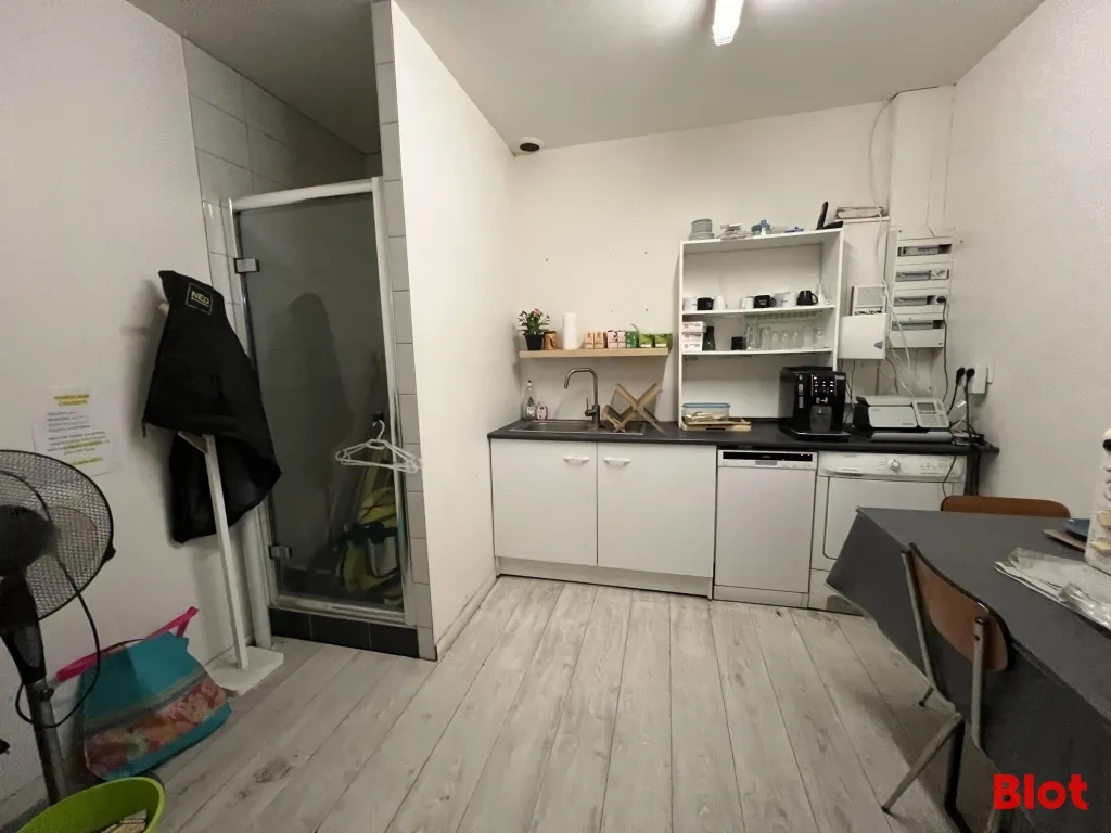 - 75 m² de bureaux et locaux sociaux : un accueil, une salle de réunion à l'étage, deux bureaux, une salle de pause avec cuisine et vestiaires.