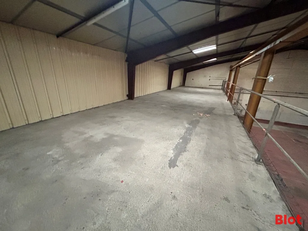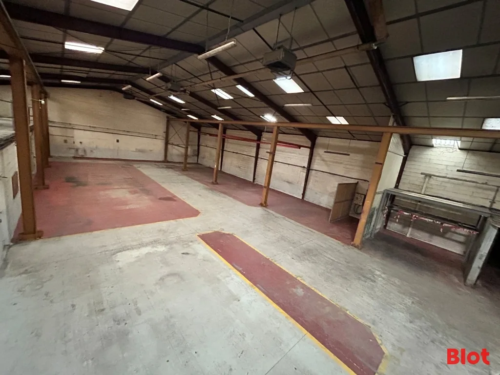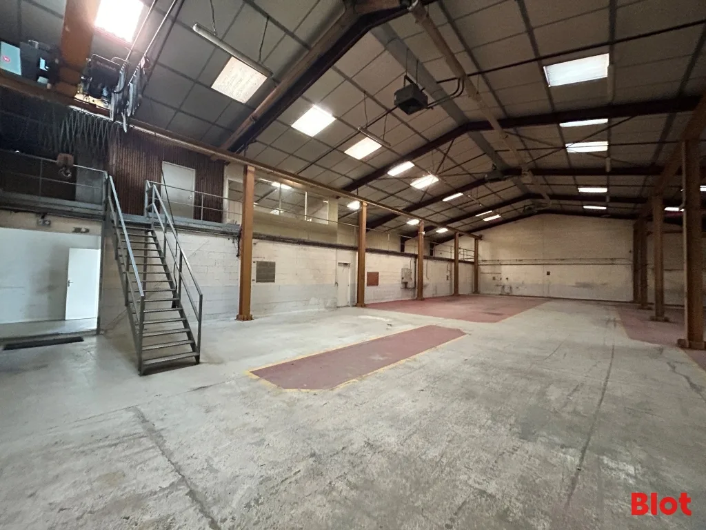 • 470 m² d’entrepôt : bâtiment isolé double peau, entrepôt chauffé, hauteur sous sablière de 4,80 mètres et sous faîtage de 7,40 mètres, 1 grande porte coulissante, alimentation électrique en triphasé, pont roulant 5 tonnes