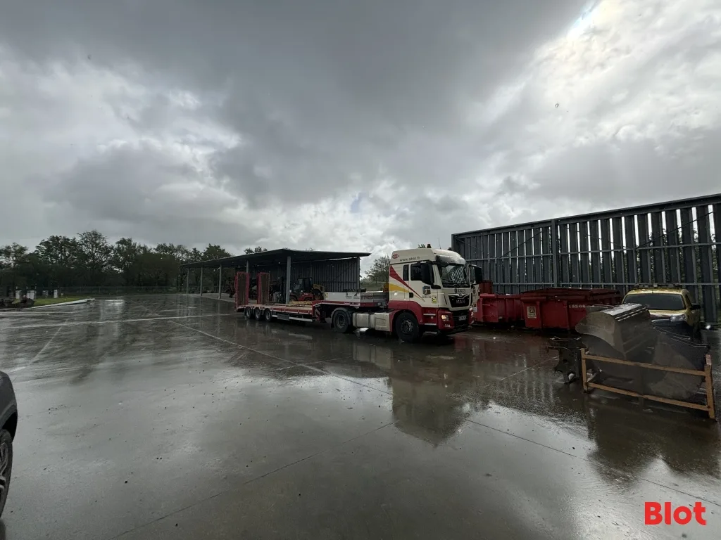 Sur un terrain bitumé, clos et sécurisé de 16 006 m² permettant le stockage.
