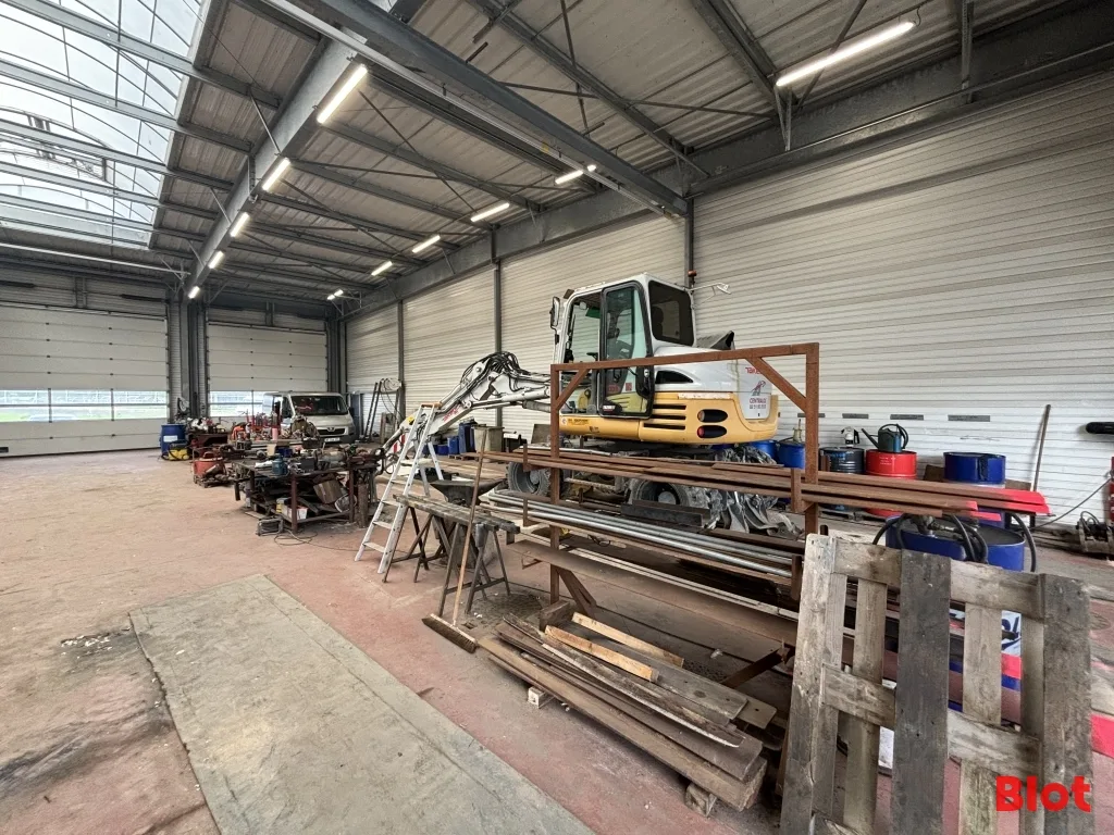 > 110 m² de mezzanine de stockage,                     > Préau extérieur pour les engins,
