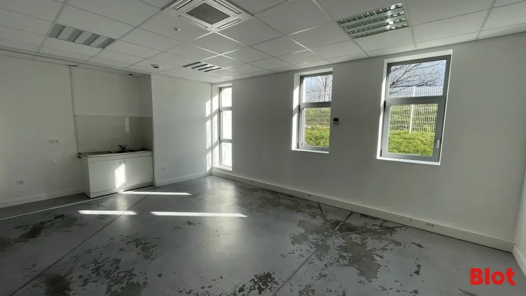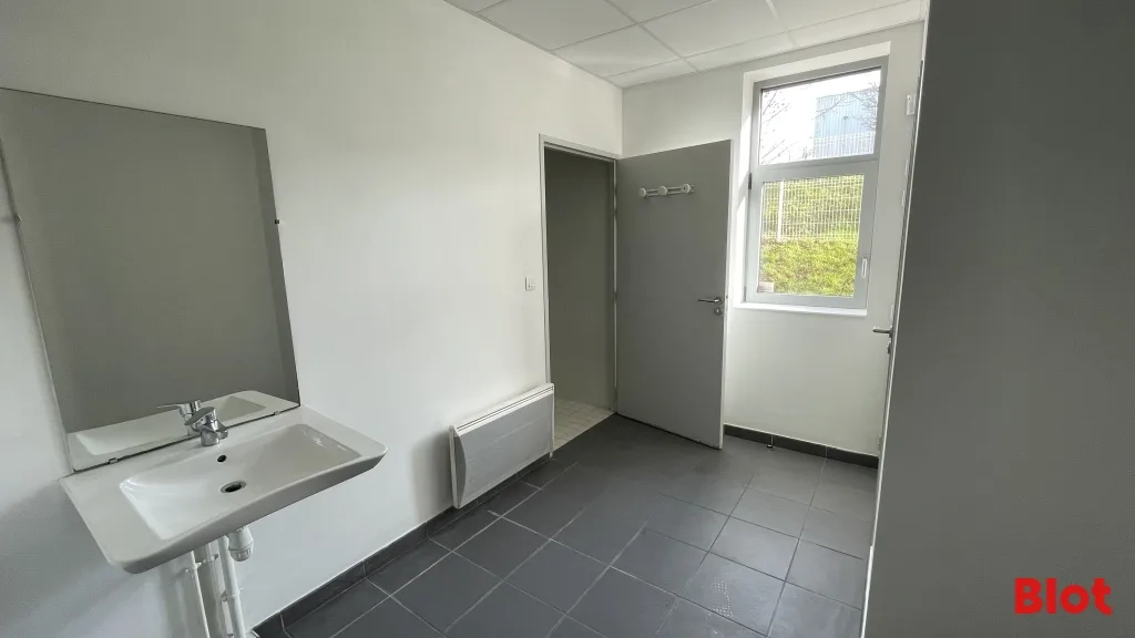 - 223 m² environ de bureaux composés en RDC d'un bureau, réfectoire, vestiaires et sanitaires et à l'étage un open space, salle de réunion et vestiaires.