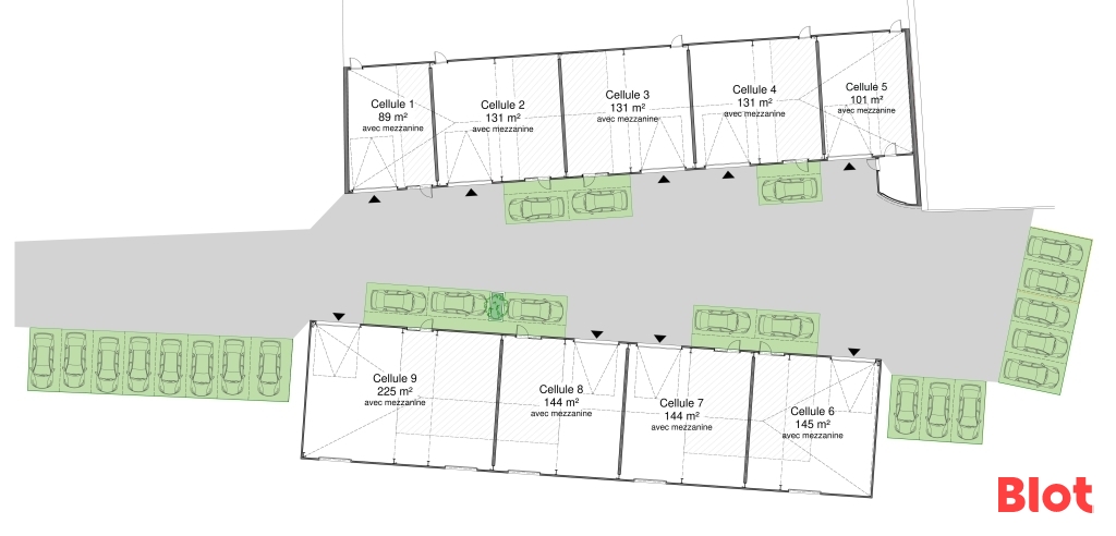 Au sein d'un parc d'activités neuf, Blot vous propose à la location une cellule de 89 m² comprenant 64 m² au sol et 25 m² à l'étage.