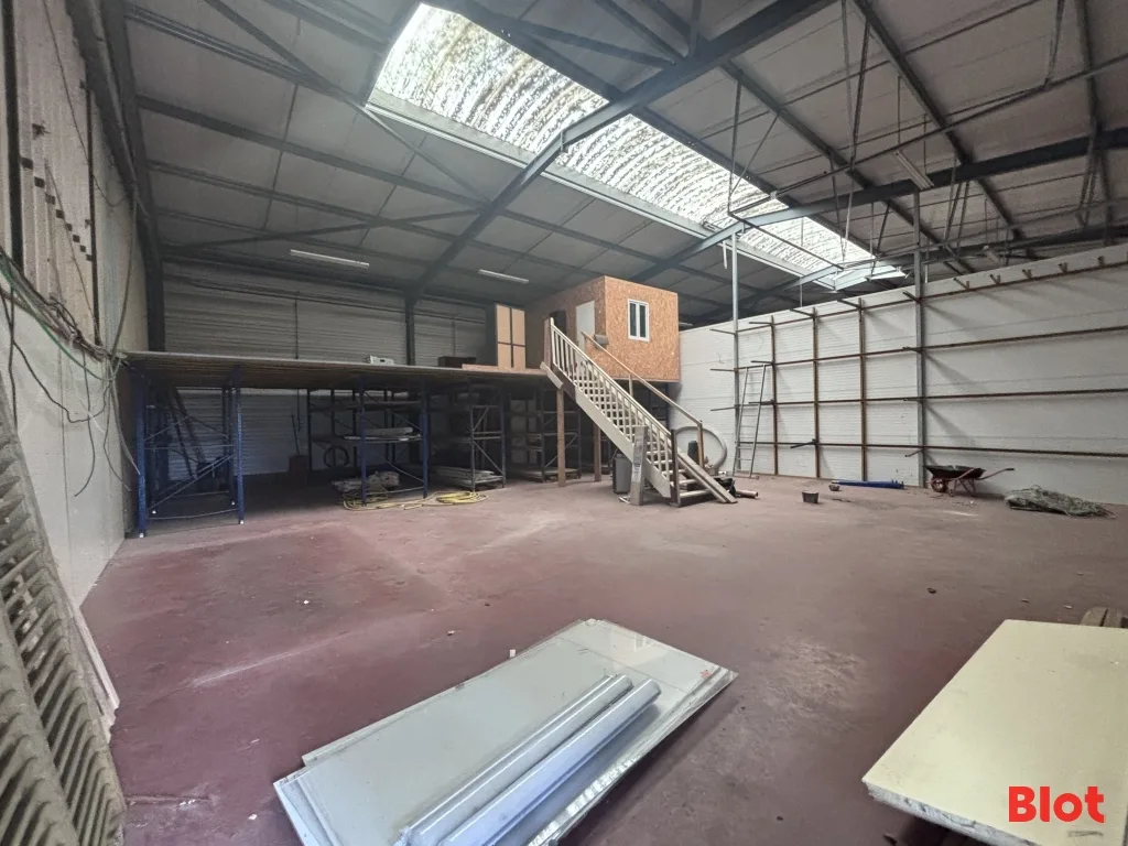 📦 Il bénéficie d'une mezzanine aménageable de 80 m² environ, et disposant d'un bureau.