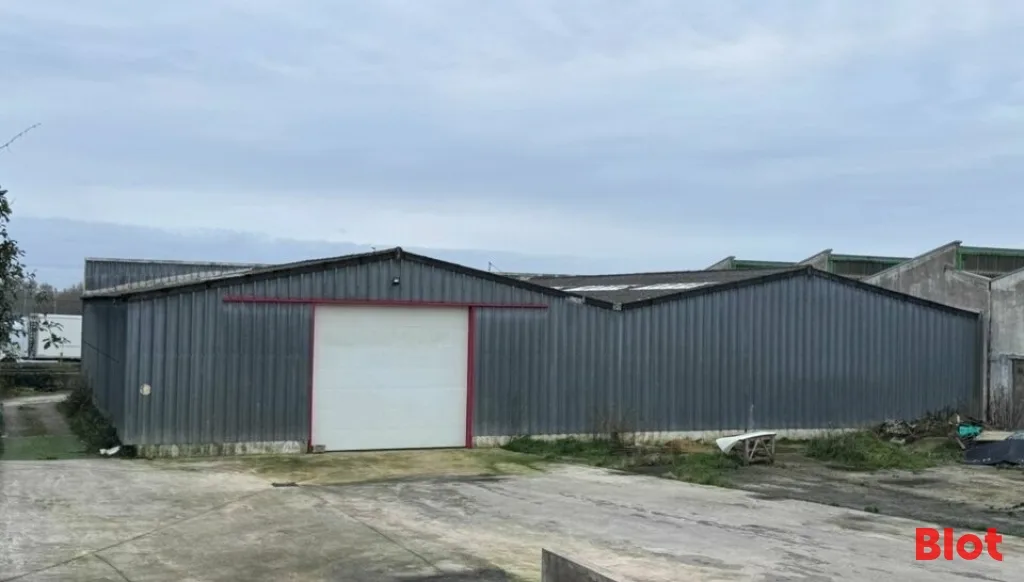 Stationnement disponible, couverture en bac acier, ossature et bardage métalliques, isolation, 2 portes sectionnelles, terrain pour stockage, terrain bitumé, aire de manœuvre, accès poids lourds 🚚