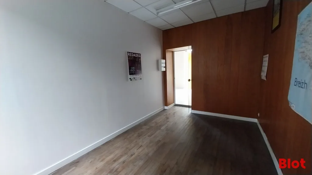 Il comprend un espace commercial, 1 bureau fermé, une kitchenette, 1 WC + point d'eau, et un accès à une cour partagée.