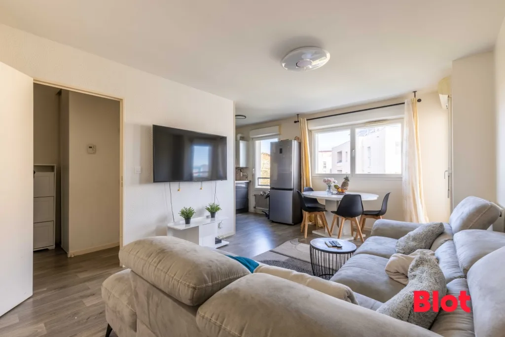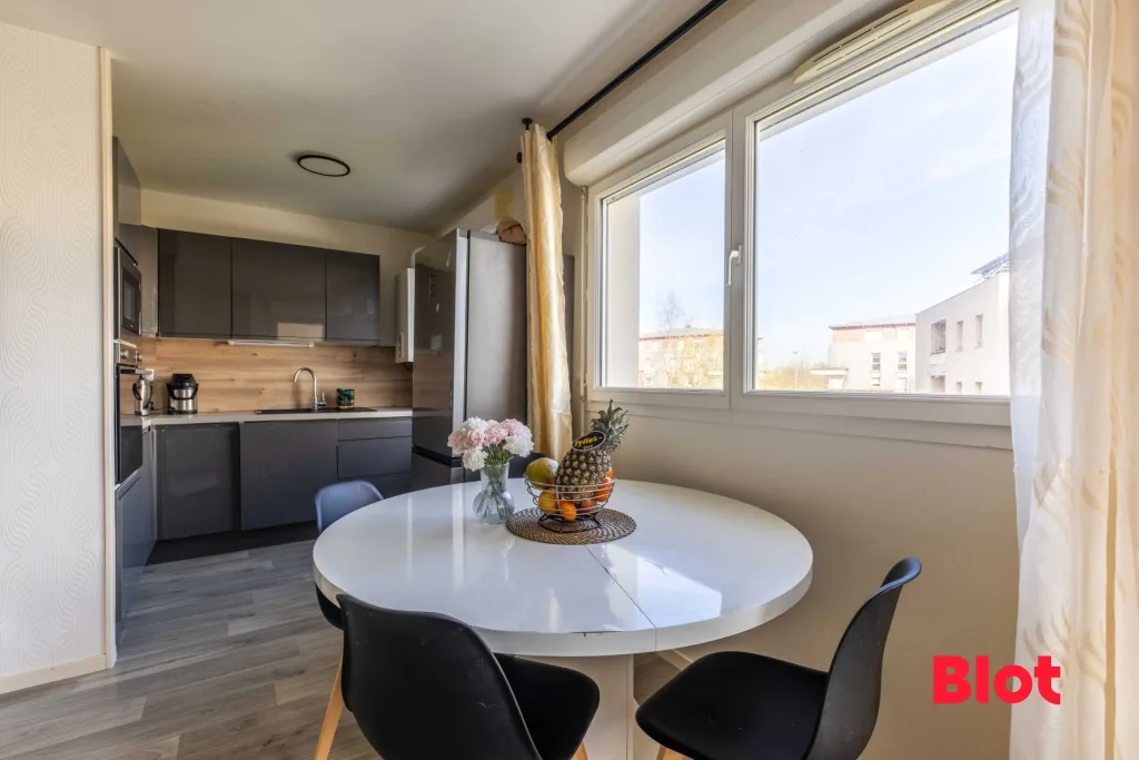 A VENDRE PAR BLOT IMMOBILIER BETTON - AU DERNIER ETAGE - Appartement de type 3 au premier et dernier étage d'une copropriété, avec terrasse et garage boxé. Se situant à proximité des transports en commun (gare et bus), du centre et du canal, découvrez cet appartement offrant un cadre de vie agréable.