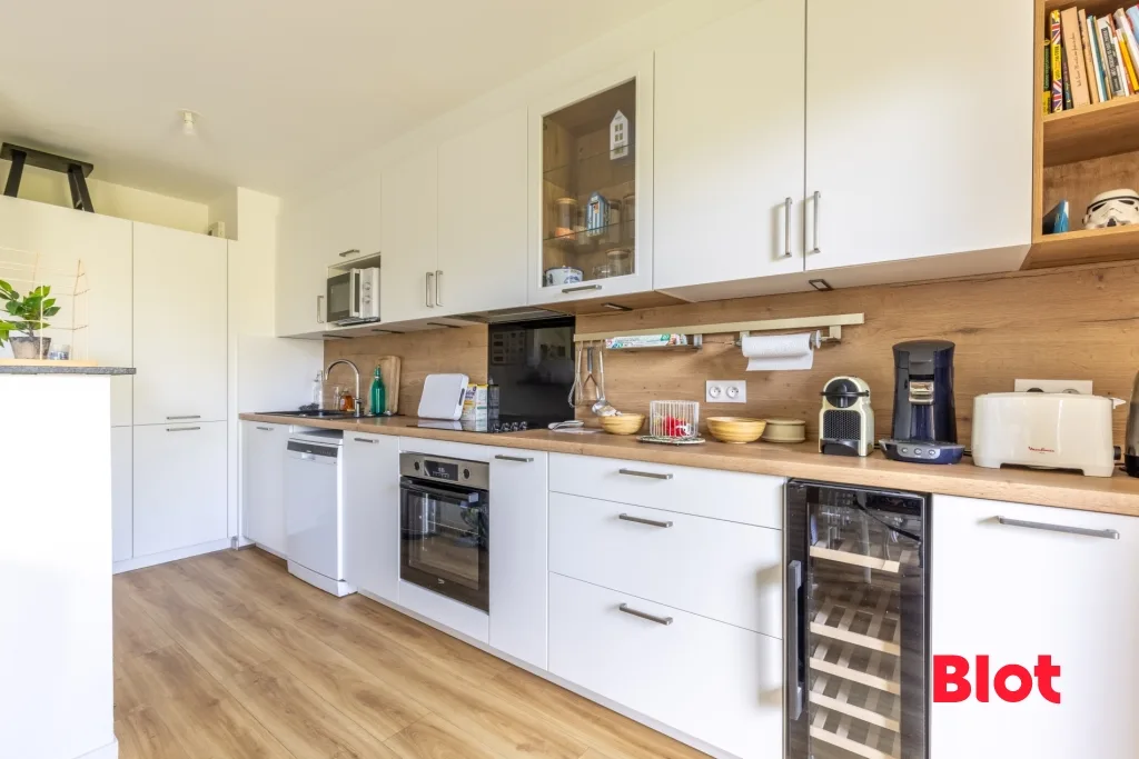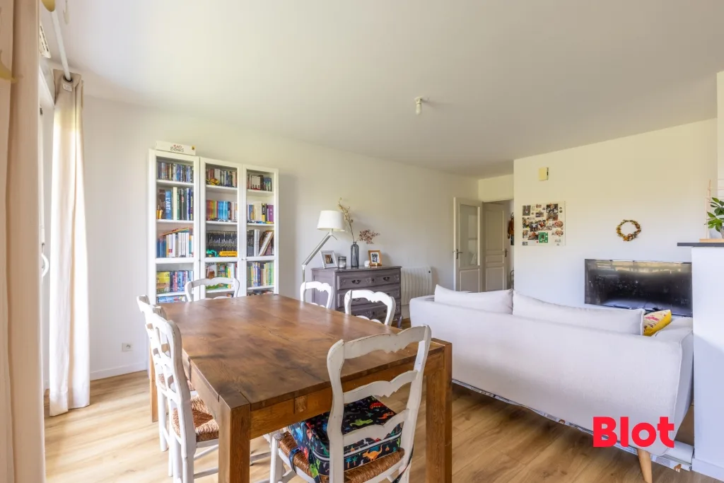 Dès l'entrée, découvrez une pièce de vie lumineuse, agréable à vivre, où l'on se projette immédiatement. La cuisine aménagée et équipée, au goût du jour, s'intègre parfaitement à l'ensemble et crée un espace convivial, idéal pour recevoir ou simplement profiter du quotidien.
