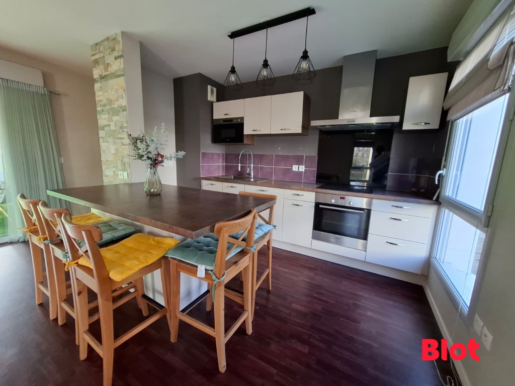 Il se compose d'une entrée avec grand placard, d'une cuisine aménagée et équipée ouverte sur le séjour lumineux avec un extérieur de plus de 7m².