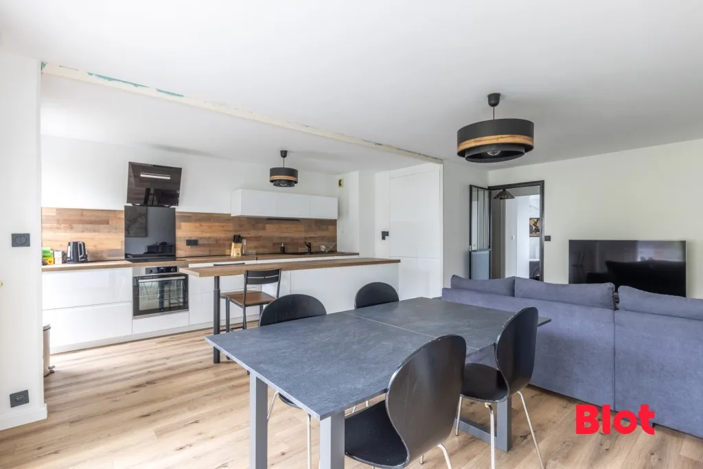 Dans un environnement calme et verdoyant, proche des transports en commun et des commerces, bel appartement de type 3 aux prestations de qualité, composé d'un lumineux séjour exposé Sud ouvert sur un balcon. Il dispose également d'une cuisine ouverte entièrement aménagée et équipée, de deux grandes chambres, d'une salle d'eau et d'un garage privatif en sous-sol.