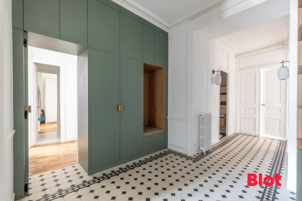 Situé au 3ᵉ étage, cet appartement de 181.8 m² loi Carrez (192 m² au sol) bénéficie d'une restauration haut de gamme. Les matériaux nobles et les prestations contemporaines s'y mêlent harmonieusement : parquets en bois massif, moulures d'origine, cheminées décoratives et agencements sur mesure réalisés par une maison réputée.