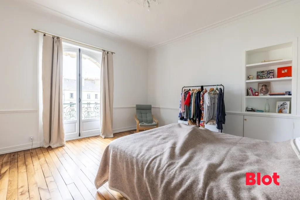 Édifié au XIXᵉ siècle, cet élégant immeuble de style haussmannien arbore une façade en pierre de taille, sublimée par des balcons en fer forgé. Restauré avec soin, il conserve ses éléments architecturaux d'origine : corniches, moulures raffinées et un hall d'entrée orné, menant à l'escalier en bois d'époque.