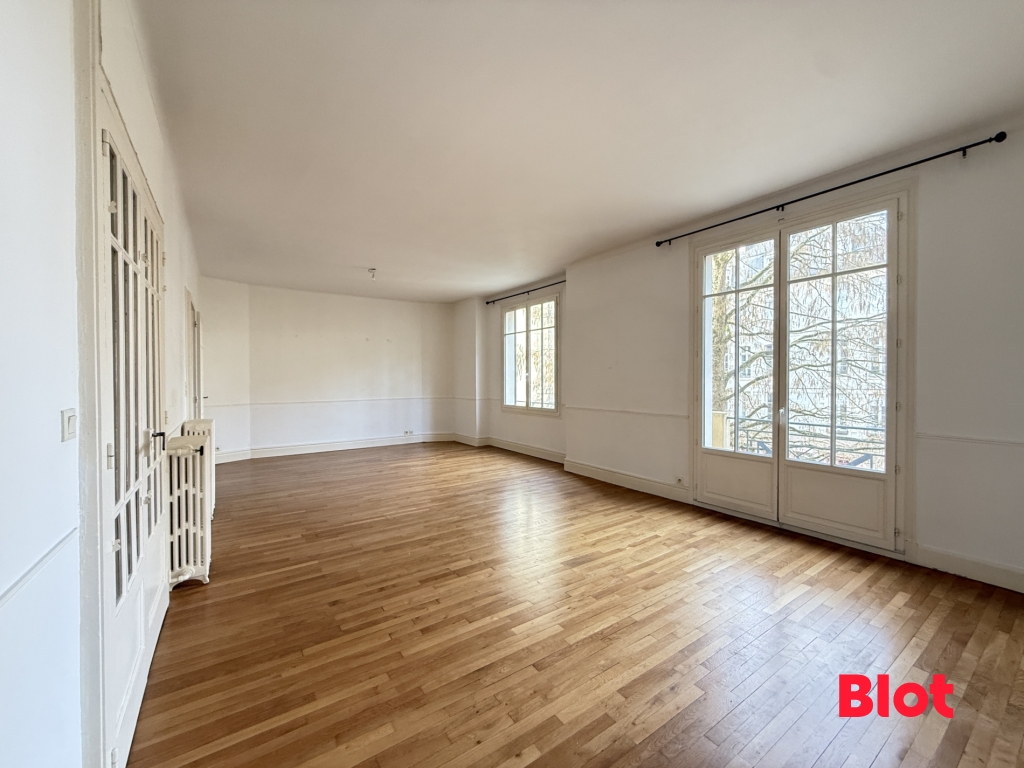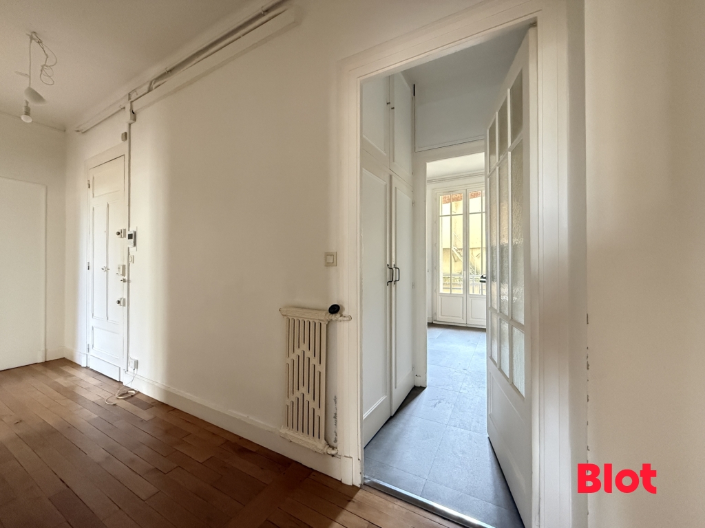 Il se compose d'une entrée desservant, un beau salon séjour de 38m², d'une cuisine fermée, un dressing, 3 chambres sur cour, une salle de bain et des WC séparés.