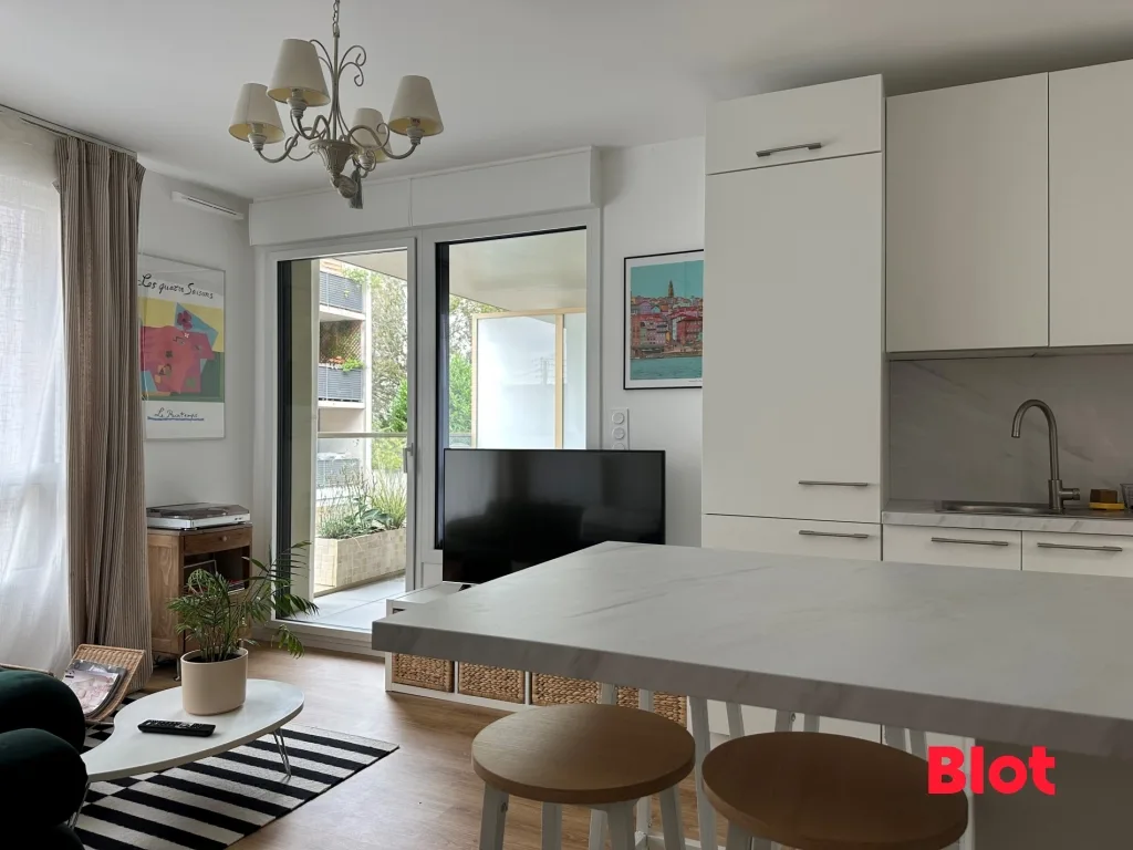 L'appartement se compose d'une entrée avec placard, d'une belle pièce de vie lumineuse, avec une cuisine entièrement aménagée et équipée, une belle terrasse dans le prolongement de cette pièce de vie double l'espace de vie lors de la belle saison.
