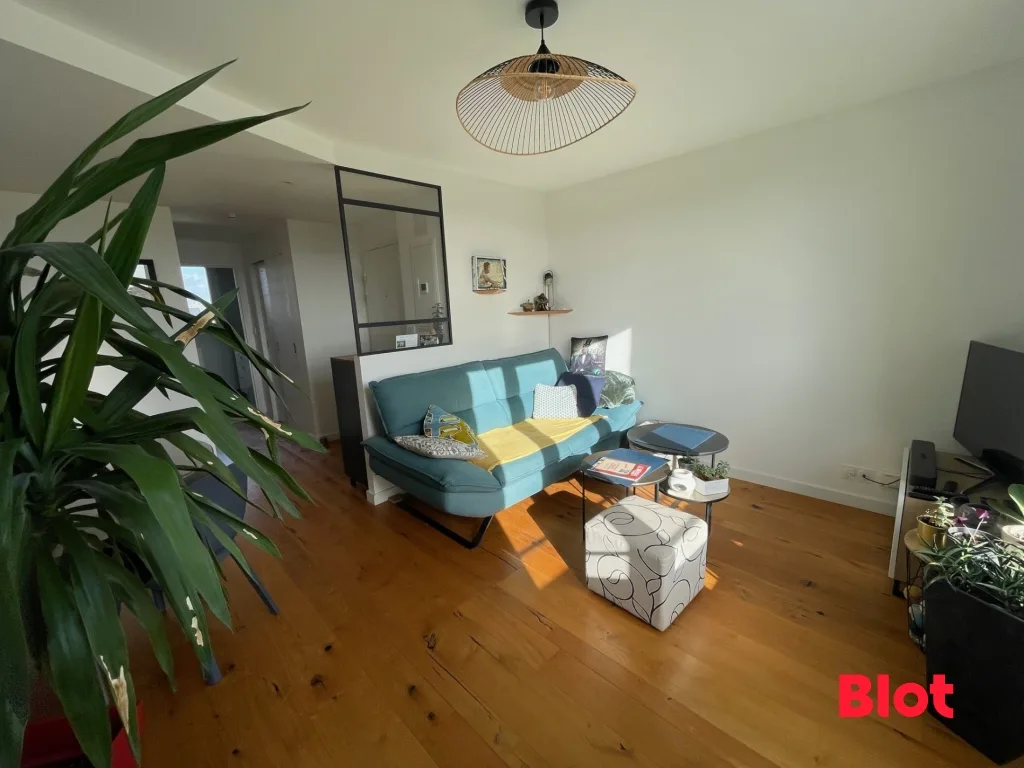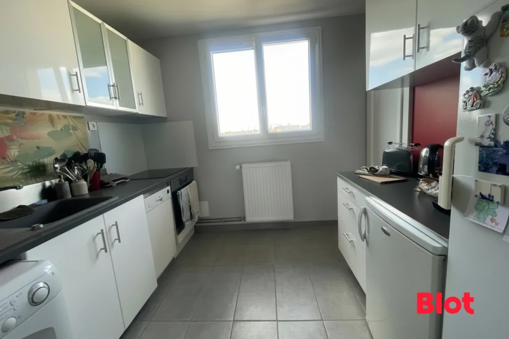 Le séjour, baigné de lumière naturelle, offre un cadre de vie chaleureux avec son beau parquet en bois et son agencement optimisé. L'espace est convivial, confortable et parfaitement entretenu : aucun travaux à prévoir dans l'appartement. La cuisine est fonctionnelle et bénéficie de nombreux espaces de rangement.