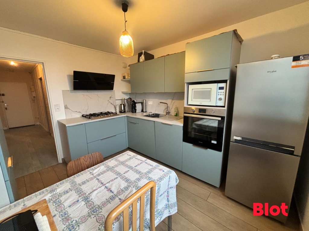 Dès l'entrée, vous découvrirez des volumes bien pensés et une distribution harmonieuse des espaces. La cuisine, entièrement équipée et aménagée, s'intègre parfaitement à l'ensemble et invite à la convivialité. La salle de séjour, lumineuse et accueillante, constitue un véritable lieu de vie, idéal pour se détendre ou recevoir, et s'ouvre sur une grande loggia ou un balcon fermé exposé plein sud, apportant une belle luminosité tout au long de la journée.