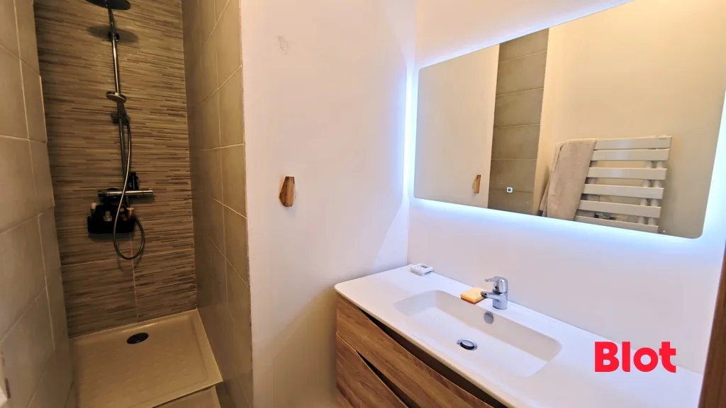 L'appartement offre une agréable pièce de vie baignée de lumière, une cuisine conviviale avec espace repas, deux chambres confortables, une salle d'eau moderne ainsi qu'une buanderie avec WC.
