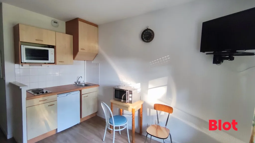 Il comprend une chambre-pièce à vivre avec kitchenette et une salle d'eau avec WC.