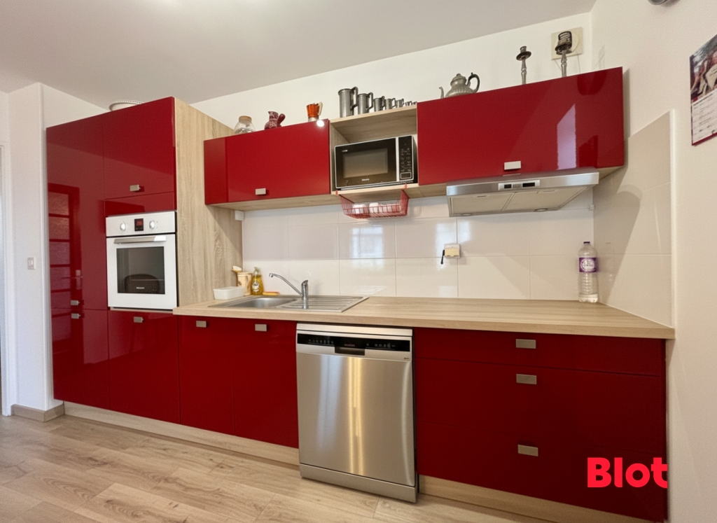 Dès l'entrée, vous découvrirez un espace accueillant avec placard, ouvrant sur une vaste pièce de vie composée d'un salon/séjour et d'une cuisine ouverte, aménagée et équipée.