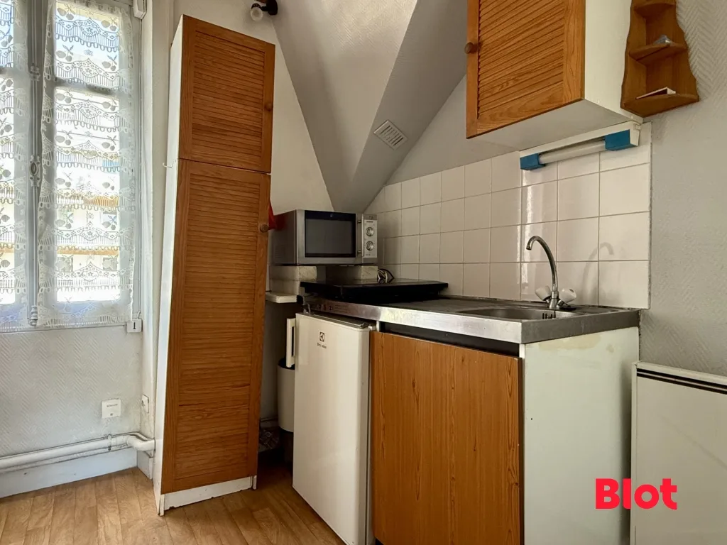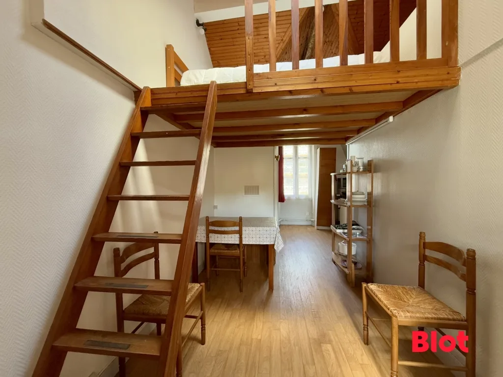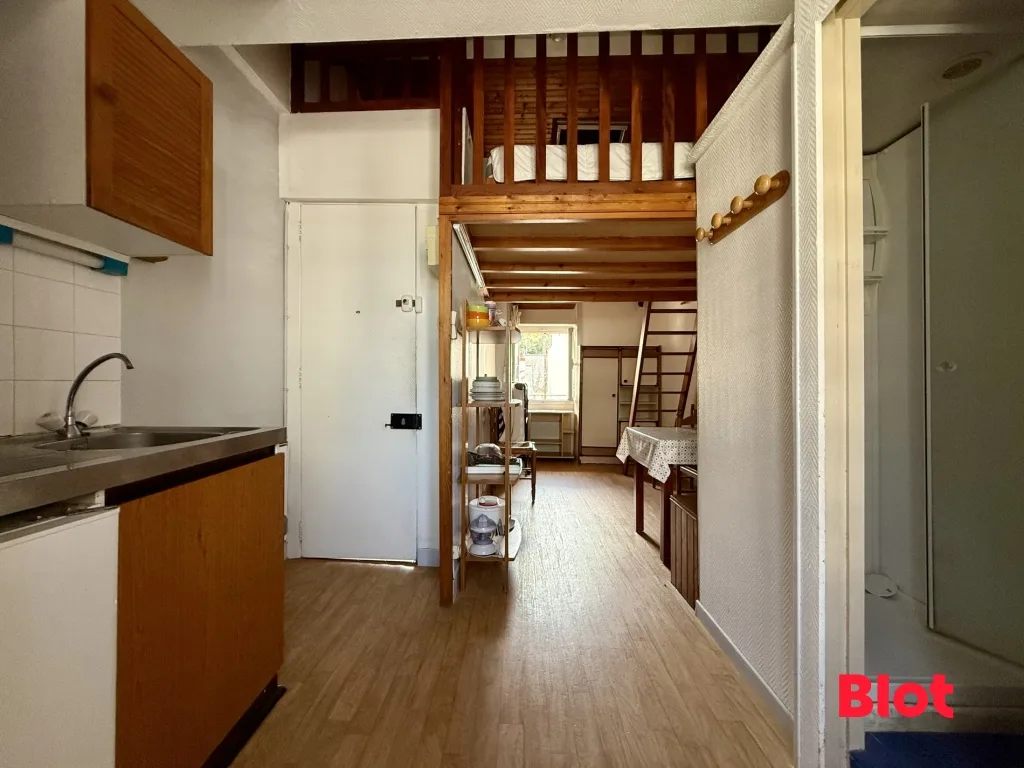 Situé au deuxième étage d'une petite copropriété, il se compose d'une pièce de vie avec cuisine ouverte avec mezzanine permettant un couchage double et d'une salle d'eau avec WC.