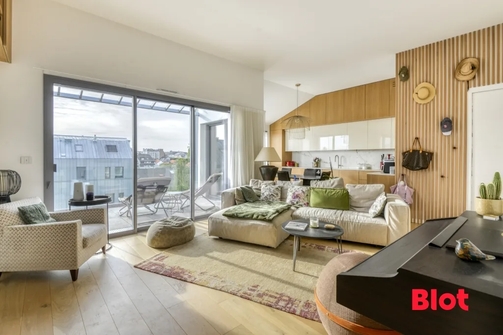 À deux pas de l'Erdre, dans une copropriété récente (2021) aux belles prestations, superbe Type 5 de 104 m² environ, situé au 2ᵉ et dernier étage avec ascenseur, seul sur son palier.