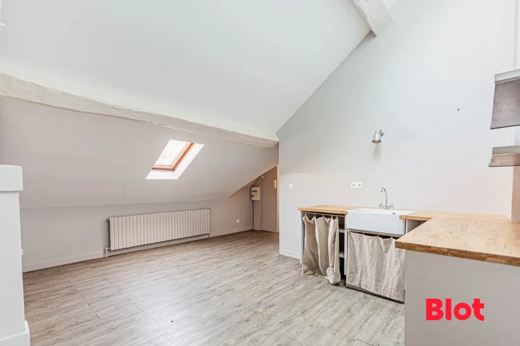 Au 3ᵉ et dernier étage, l'appartement séduit par le charme de l'ancien : belle hauteur sous plafond, cheminée et volumes sous pente qui lui confèrent une atmosphère chaleureuse et authentique.