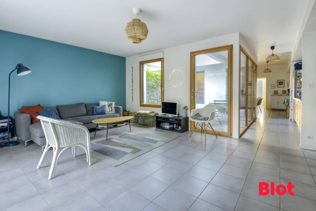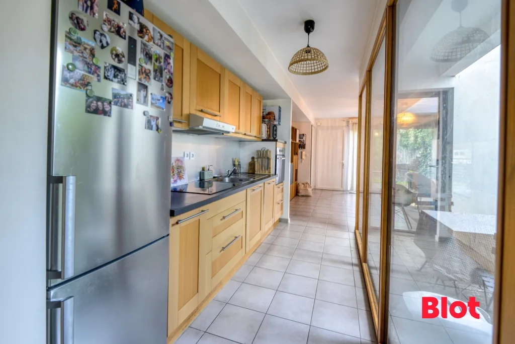 Vous serez séduit par son grand salon-séjour lumineux, ouvert sur le jardin, créant un espace de vie convivial et baigné de lumière naturelle. La cuisine, aménagée et équipée, s'intègre parfaitement à l'ensemble pour un quotidien pratique et confortable.