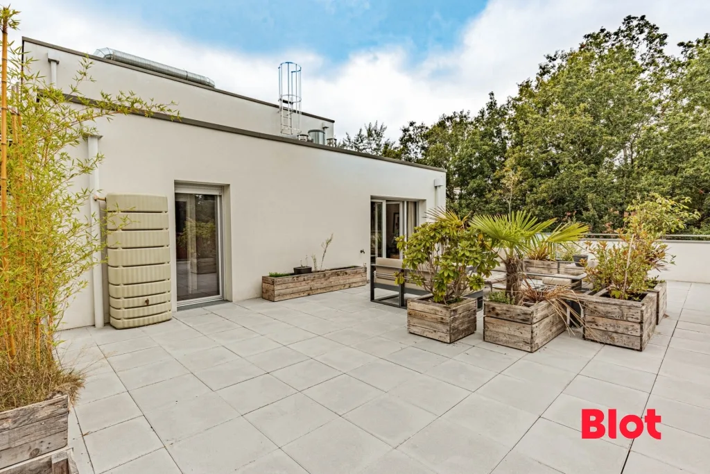 Et que dire de cette terrasse, pas moins de 100m² environ sur lesquels vous pourrez librement y aménager vos envies (salon de jardin, coin détente, jeux pour enfants, et pourquoi pas un jacuzzi la dalle est prévue à cet effet). En sommes, un jardin clos, sécurisé et à l'abri des regards sur le toit.