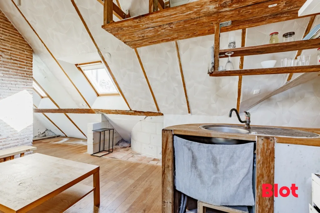 À vendre en exclusivité chez Blot Immobilier : à quelques pas du Château des Ducs de Bretagne et de la cathédrale de Nantes, que vous aurez le plaisir d'apercevoir depuis les Velux de l'appartement, nous vous proposons ce T2 à la vente, d'une superficie de près de 26m² en loi Carrez (près de 46m² au sol).
